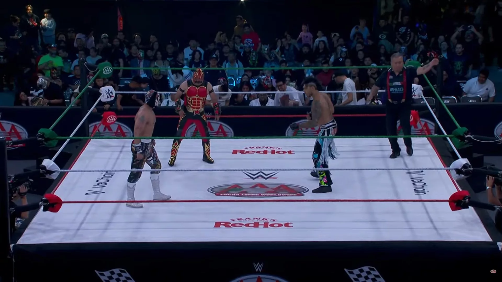 Dinámico, El Rey de la Imperial, está de regreso en AAA... Mr. Iguana con La Yezca y Dinámico empezaron las acciones al sonar la campana... Tras un intercambio de empujones y un cabezazo al pecho de Mr. Iguana para Dinámico, este resultó volando tras una corbata... La Hiedra luego le castigó el brazo a Lola Vice; esta, con una rodada sobre su propio eje, revirtió la situación... Patadota de taekwondo de Lola Vice al abdomen de La Hiedra, Lola bailó, pero Hiedra se paró también para bailar, solo que luego Lola la derribó y la cuenta llegó solo a dos... Lola Vice luego atacó con palanca al brazo a Hiedra... Mr. Iguana también puso con una linda palanca al brazo al Dinámico... Hiedra sobrevivió a la palanca; al igual que Dinámico, se puso en pie con mucha fuerza y con tremendo powerbomb se liberó de la llave de Mr. Iguana... Lola Vice luego atacó con patadotas rápidas a Dinámico, pero La Hiedra con tremendo lariat al cuello la atacó a la cubana... Luego, Dinámico le cayó encima con patadotas voladoras a Mr. Iguana... Lola Vice recibió tremendos derechazos a la cara; luego, Hiedra pateó en la entrepierna a Lola Vice, le abrió las piernas con las sogas y le cayó encima con tremendas patadas voladoras a la zona íntima... La cuenta llegó a dos... La Hiedra le dio bofetada al trasero a Lola Vice, Mr. Iguana quería entrar, pero no pudo... Lola reaccionó, pero recibió un rodillazo a la cara... Con tremendo súplex, Lola emparejó las acciones con la Hiedra... Dinámico y Mr. Iguana entraron; el verde logró con una corbata mandar a volar a su rival. Luego, Mr. Iguana con Huracarrana logró una cuenta en dos segundos... Dinámico sorprendió con un cutter a Mr. Iguana, pero este evitó la caída... La Yezca apareció y Mr. Iguana le dio tremendo golpe a Dinámico, aunque La Hiedra se la quitó, pero se asustó con la iguana... Lola Vice atacó con su trasero a Dinámico en la cara; luego, con una corbata, Mr. Iguana la mandó a volar... Lola Vice logró con unas tijeras castigar a Hiedra; esta reaccionó con rodadas a espaldas... Mr. Iguana atacó a La Hiedra con La Yezca, con tremenda patadota giratoria a la cabeza; Lola la sacó del ring y le cayó encima... Mr. Iguana recibió una patadota giratoria, Mr. Iguana luego recibió tremendo powerbomb, pero la cuenta llegó solo a dos... Mr. Iguana rasgó la cara de Dinámico; luego, este giró y con su tremendo DDT, Mr. Iguana ganó la lucha.