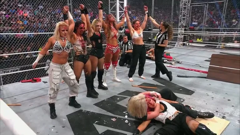 Cuando Harley Cameron se unió al combate, la violencia se multiplicó. Las Sisters of Sin castigaron a sus rivales con sillas y tachuelas, hasta que Thekla irrumpió con su cinturón para equilibrar el terreno. La aparición de Jamie Hayter cambió la energía, arrojando tachuelas por el ring y usando un palo de kendo con alambre de púas que destrozó la espalda de sus oponentes.