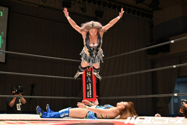 1. Chikayo Nagashima venció a Mikoto Shindo (7:50) con un Diving Foot Stomp.