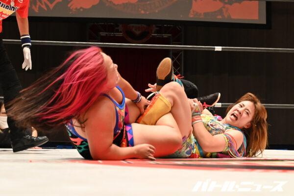 La semifinal fue una lucha de poder a poder entre Chihiro Hashimoto de Sendai Girls pasó sobre Mei Hoshizuki.