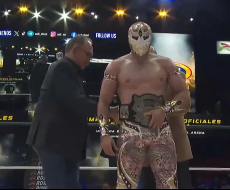Con esta victoria, Máscara Dorada retiene el Campeonato Mundial Histórico de Peso Welter y reafirma su dominio ante talento internacional.