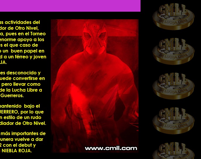 “Dentro de las novedades de esta semana en las actividades del CONSEJO MUNDIAL DE LUCHA LIBRE, el Gladiador de Otro Nivel, ÚLTIMO GUERRERO mostrará un «As» bajo la manga, pues en el Torneo La Gran Alternativa, siempre ha demostrado un enorme apoyo a los gladiadores de la Comarca Lagunera como es el que caso de EUFORIA y DRAGON ROJO JR. quienes han hecho un buen papel en anteriores ediciones , y ahora le da la oportunidad a un férreo y joven gladiador de nombre NIEBLA ROJA.