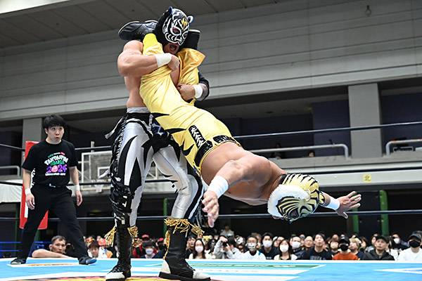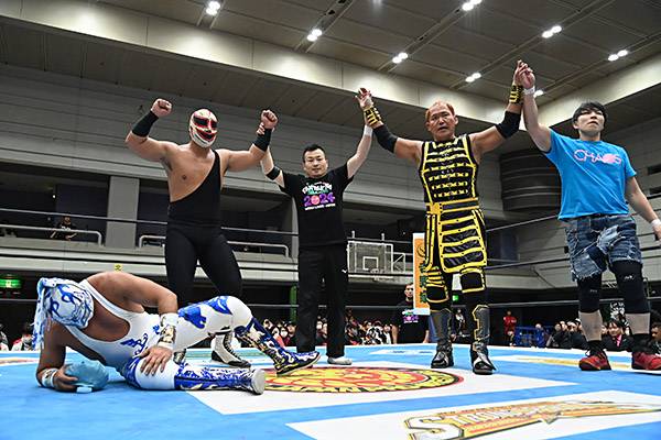 El joven sensación Máscara Dorada tuvo un debut soñado en Japón al lado de Místico y Hiroshi Tanahashi. Ellos fueron los vencedores de la gran estelar, que resultó vertiginosa y donde Último Guerrero, Stuka Jr y Francesco Akira cayeron.