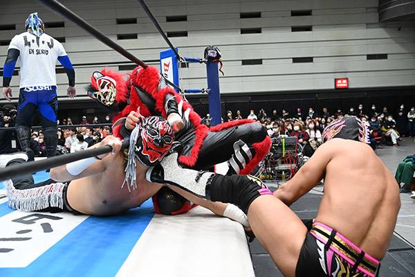 OKUMURA comandó a YOH y Strong Machine J de Dragon Gate para dar cuenta de la tercia de Dark Panther, Pegasso y 2nd Generation Super Kokeshi Machine (Tomoaki Honma).