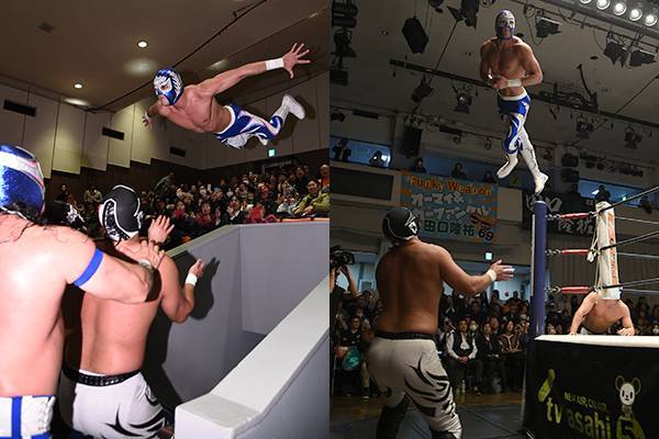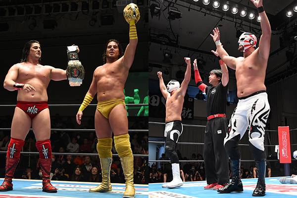 Satoshi Kojima y Caristico unieron fuerzas para dar cuenta de Último Guerrero y Bárbaro Cavernario, como preludio a la lucha que sostendrían Kojima y Guerrero al día siguiente.