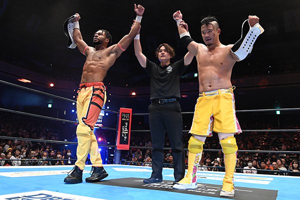 Intergalactic Jet Setters (Kevin Knight y KUSHIDA) se apoderaron por segunda ocasión del Campeonato de Parejas de Peso Jr. IWGP, doblegando al BULLET CLUB War Dogs (Clark Connors y Drilla Moloney).