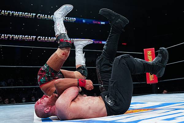 Naito intentó dar un codazo sobre su oponente para después intentar Destino, pero Moxley respondió con un Death Rider seguido de Stunner. El monarca nipón contraatacó con Destino y al querer aplicar el castigo nuevamente, salió erratico.