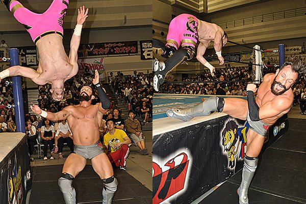 1. YOSHI-HASHI y Rocky Romero vencieron a Ryusuke Taguchi y David Finlay (8:08) cuando YOSHI usó una Butterfly Lock sobre Finlay.