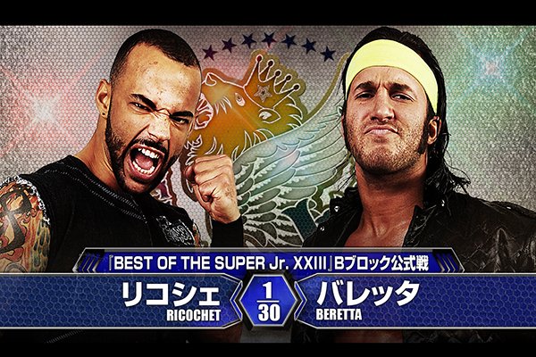 6. Best of the Super Jr. – Grupo B: Ricochet [8] derrotó a Baretta [4] (13:13) con una Crucifix Hold.