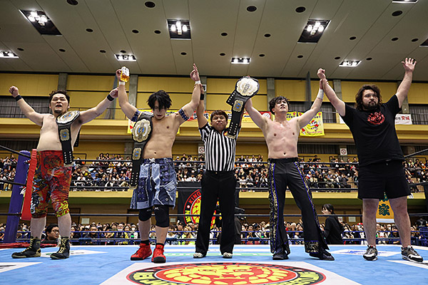 5. Shota Umino, Yuya Uemura y Ryusuke Taguchi vencieron a Yota Tsuji, OSKAR y Daiki Nagai (11:03) con un Chickenwing Armlock de Uemura sobre Nagai.