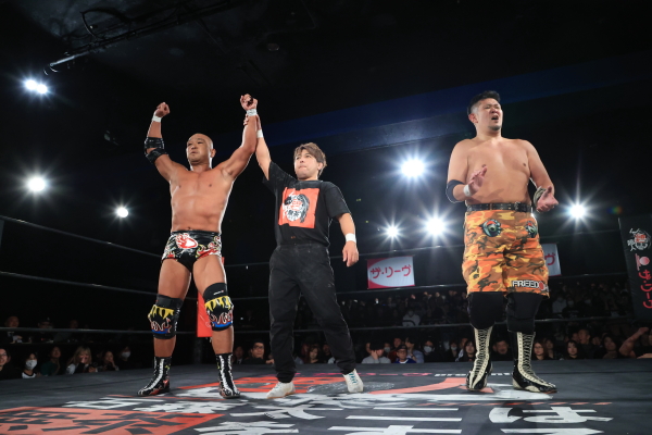 3. Handicap Match: Shuji Ishikawa venció a Taiji Ishimori y Black Menso~re (6:47) con un Giant Driver sobre Menso~re.