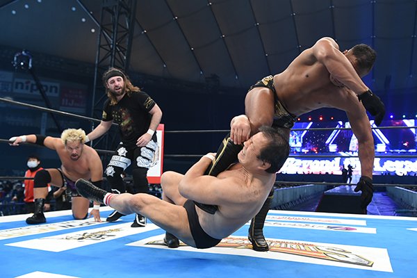 Ospreay castigó al enmascarado con Springboard Forearm seguido de Stormbreaker. Naito y SANADA intentaron ayudar a su compañero, pero Cobb y O-Khan lo impidieron y Ospreay remata con Hidden Blade