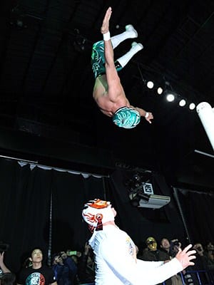 La primera lucha fue la única donde se presentaron gladiadores nipones, Okumura hizo equipo con Taichi y TAKA Michinoku, quienes no dudaron en hacer sufrir a nuestros compatriotas.