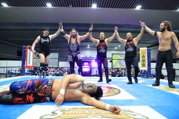 6. SANADA, Taichi y Yuya Uemura derrotaron a Tetsuya Naito, Hiromu Takahashi y BUSHI (8:36) con un Storm Clutch de Uemura sobre BUSHI.