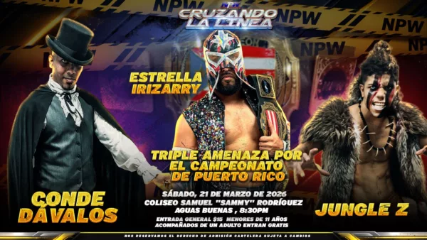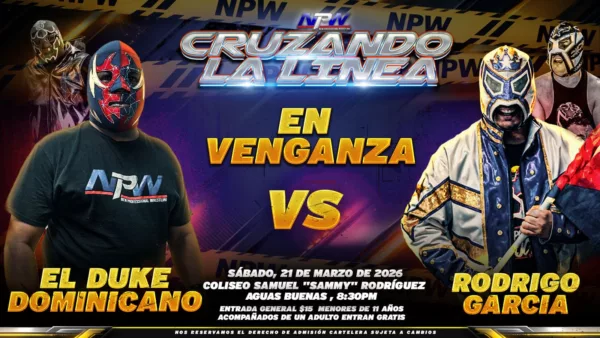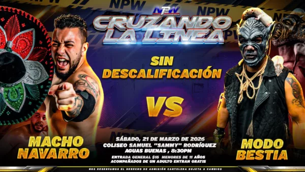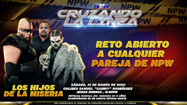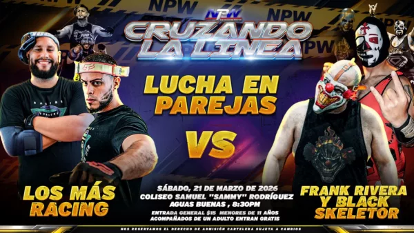 (San Juan, Puerto Rico) – La empresa NPW (New Professional Wrestling) presenta su próximo evento CRUZANDO LA LÍNEA, este Sábado 21 de Marzo del 2026 en el Coliseo Samuel “Sammy” Rodriguez en Aguas Buenas desde las 8:30 de la noche.
