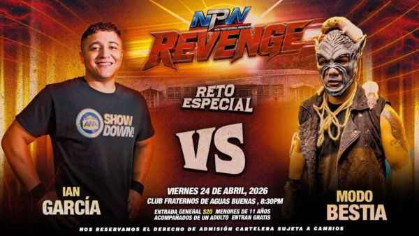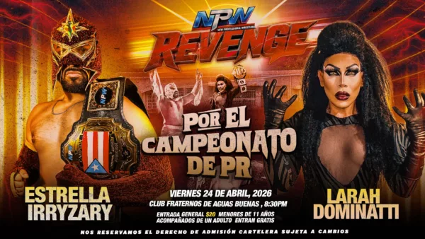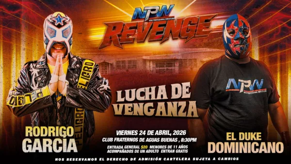 La empresa New Professional Wrestling (NPW) se presenta este Viernes 24 de Abril 2026 en el Club Fratenos del municipio de Aguas Buenas desde las 8:30 de la noche con el evento Revenge.