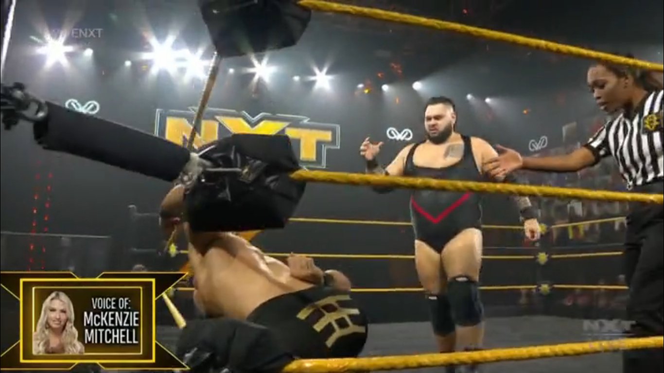Breeze castiga a Burch contra el esquinero hasta que el réferi le advierte. Burch se sale del ring, Breeze va en su búsqueda, pero es azotado contra la barrera de protección mientras el réferi inicia el conteo.