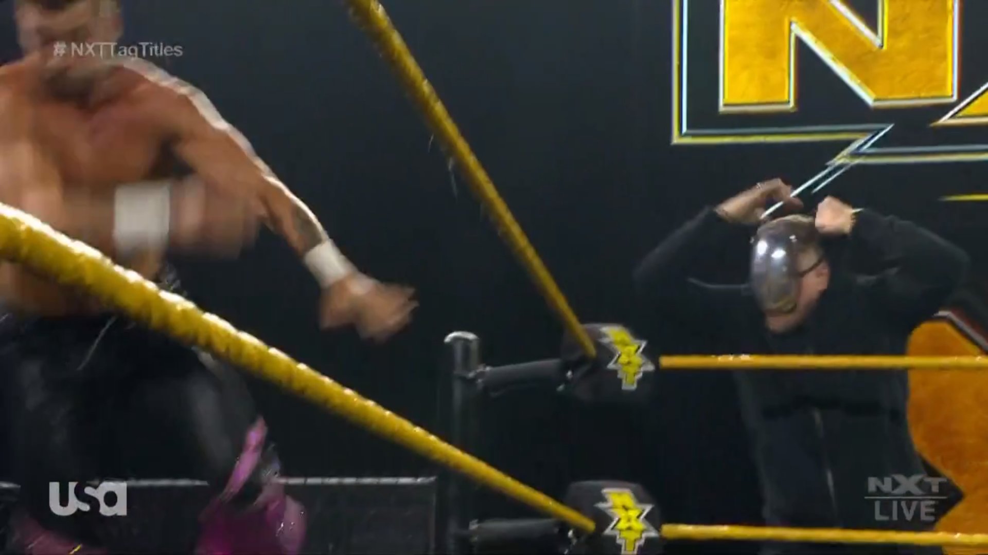 Los nuevos campeones celebran y el encapuchado aparece y festeja con ellos. Eventualmente se revela y ¡¡¡es Pat McAfee!!! Así, McAfee presenta a los nuevos Campeones de Parejas NXT y se burla de Undisputed Era.