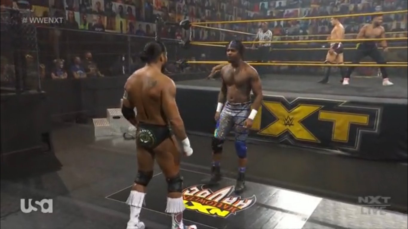 Breeze ingresa y Lorcan hace lo propio, aunque ilegalmente. Fandango es sacado del ring y entre Lorcan y Burch le aplican una doble maniobra de rendición a Breeze, hasta que Fandango llega al salve y saca a Lorcan del ring.
