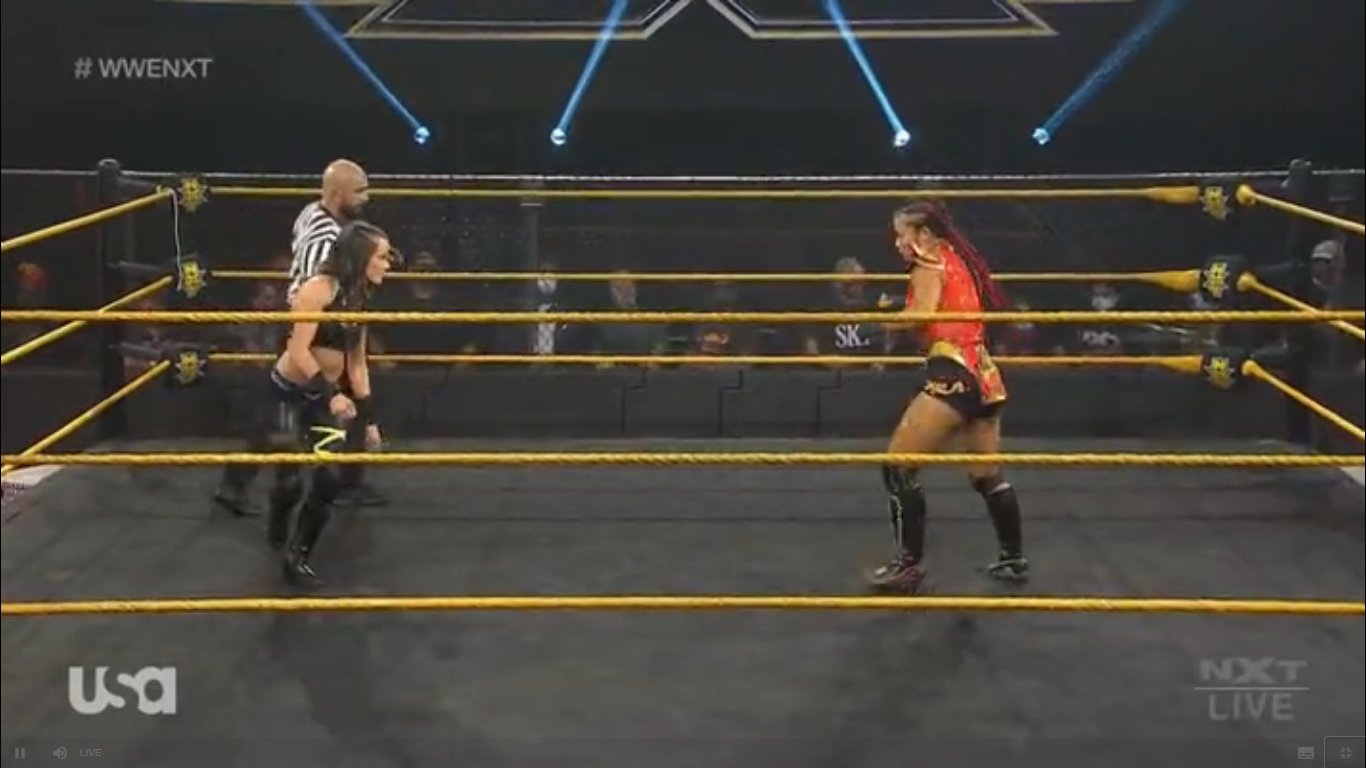 Y tenemos la primera lucha individual de Ember Moon luego de su lesión. Recordemos que hace un par de semanas compitió en una lucha por equipos.