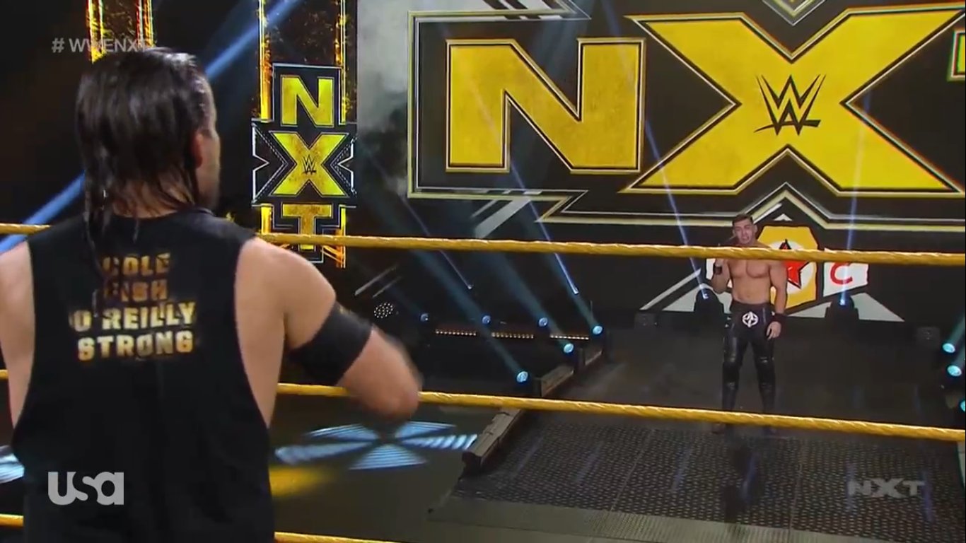 Balor mete a Undisputed Era en la conversación, O’Reilly le recalca que este domingo no se trata de Undisputed Era, sino de él, y que no hay conflicto de poderes en el grupo. De hecho, le recuerda lo que le pasó a Cameron Grimes hace una semana cuando se burló de él.