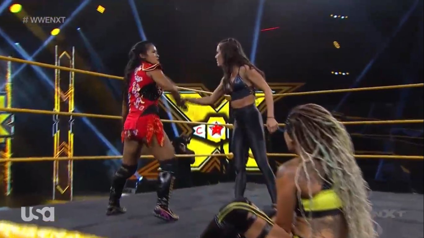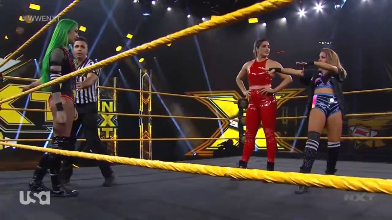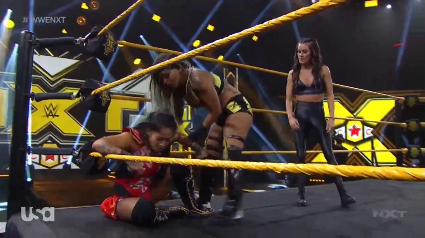 LeRae ingresa, pero cae presa del Crossface. Gargano le toma la pierna a Shirai y rompe la llave. Priest va en su auxilio, pero no consigue el Chokeslam. Shirai ataca a Gargano y LeRae la sorpende y logra una cuenta de dos.