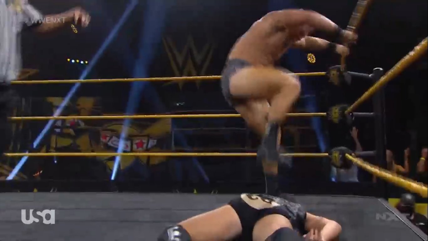 Suena la campana y Kushida aplica un dropkick. De inmediato, le conecta varias patadas a Nese, pero este bloquea un ataque apoyándose en las cuerdas.