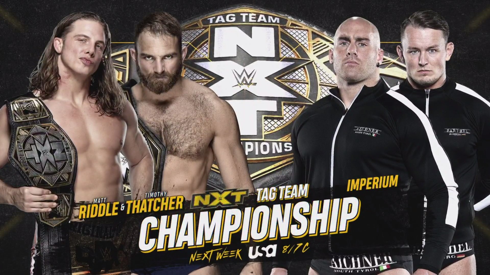 Matt Riddle y Timothy Thatcher son entrevistados y Riddle dice que no perdonará a los de Imperium y aceptan el reto. Thatcher concluye diciéndole a Riddle: «Tu los noqueas y yo los hago rendir.»