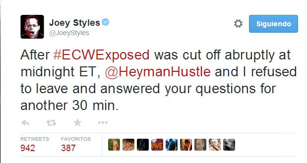 Heyman y Joey Styles se extendieron en el programa hasta la media noche, cuando el canal cortó la transmisión.Después de eso, ambos siguieron platicando y contestando laspreguntas de los aficionados. Así lo dijo Joey Styles: