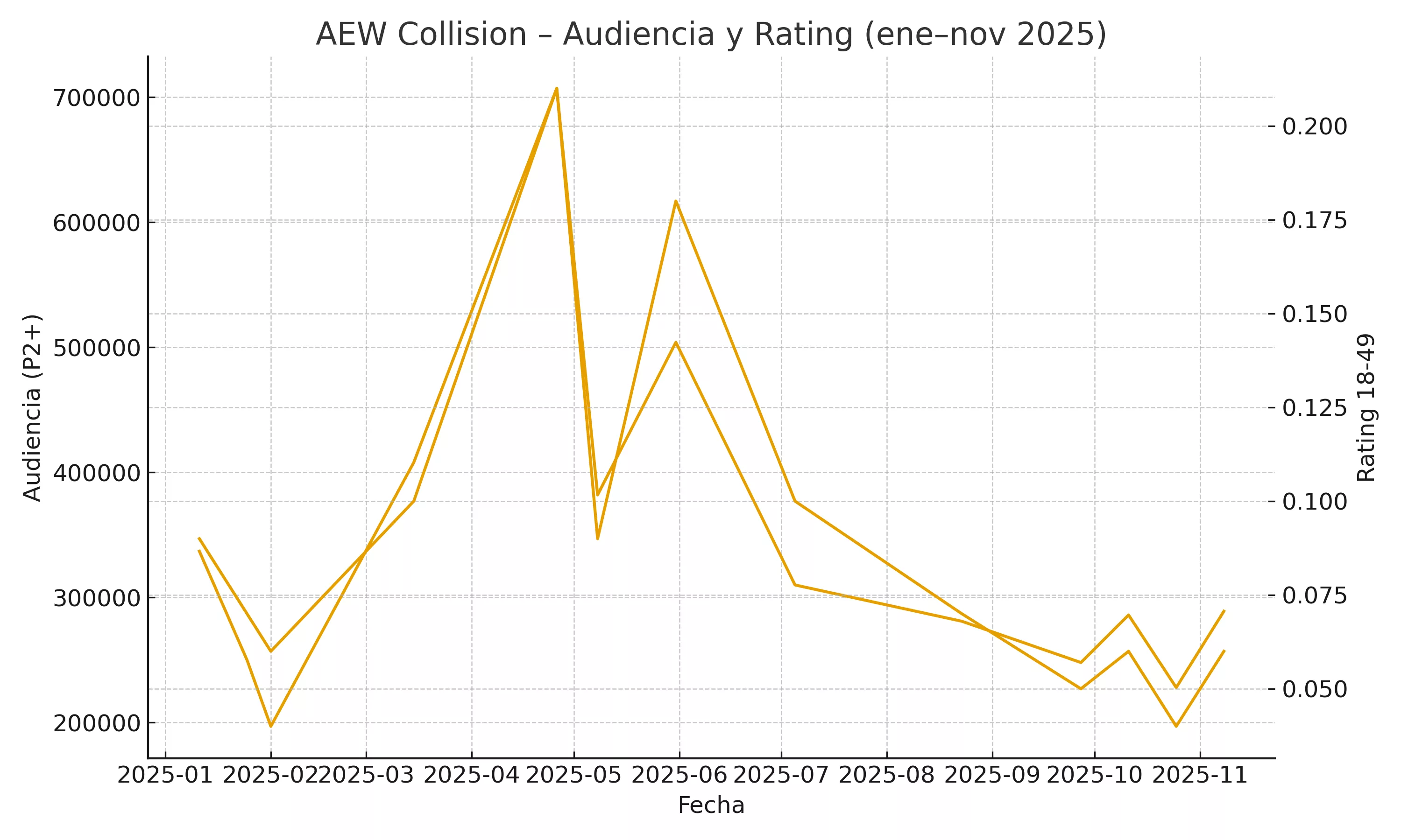 Hace un año, el 16 de noviembre de 2024, Collision atrajo a 365.000 espectadores y obtuvo una calificación de 0,11 en el grupo demográfico de 18 a 49 años.