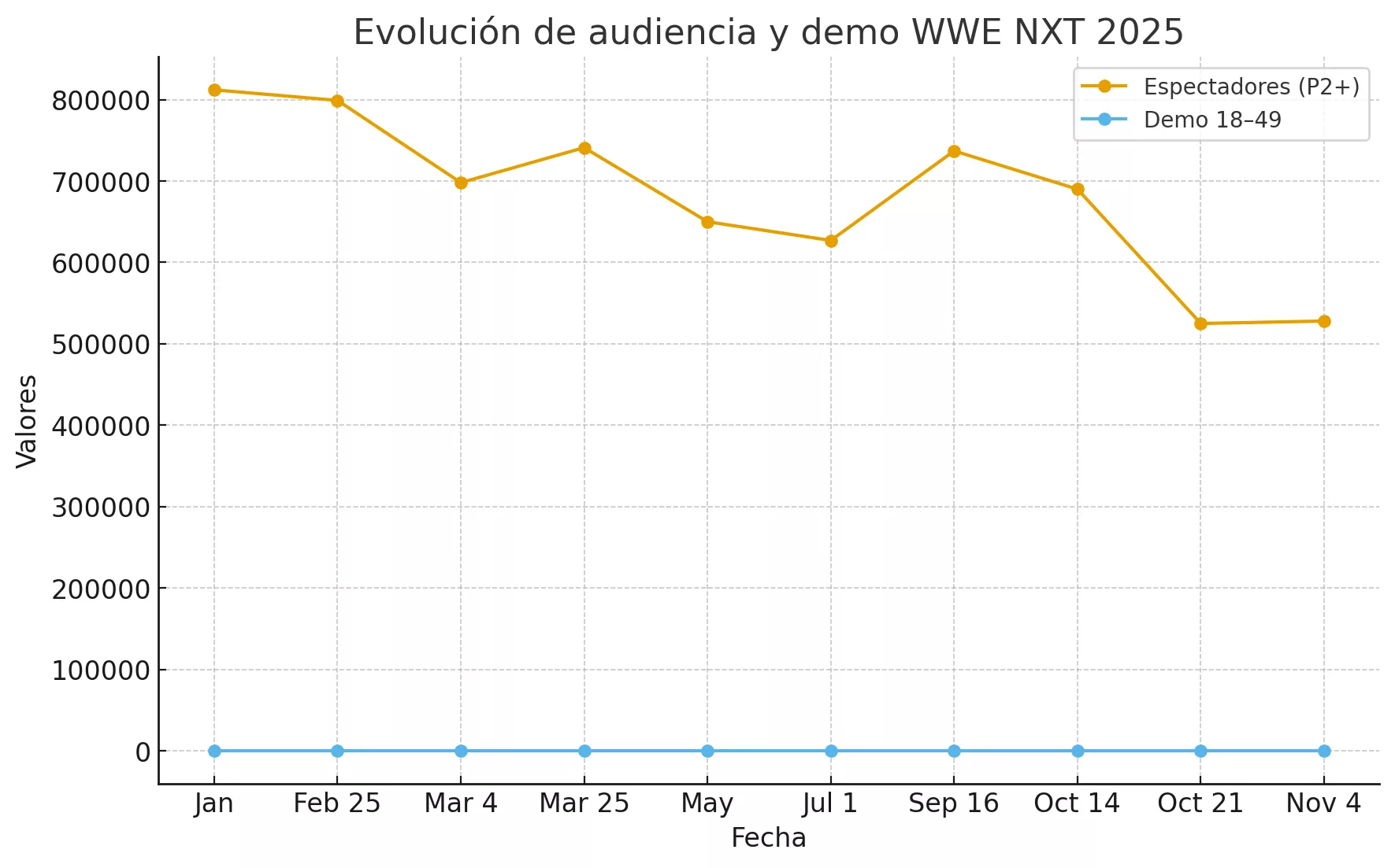 El año pasado por estas fechas, el episodio de NXT del 12 de noviembre de 2024 atrajo a 631.000 espectadores y obtuvo una calificación de 0,16 en The CW. El episodio de NXT del 14 de noviembre de 2023 atrajo a 703.000 espectadores y obtuvo una calificación de 0,21 en USA Network.