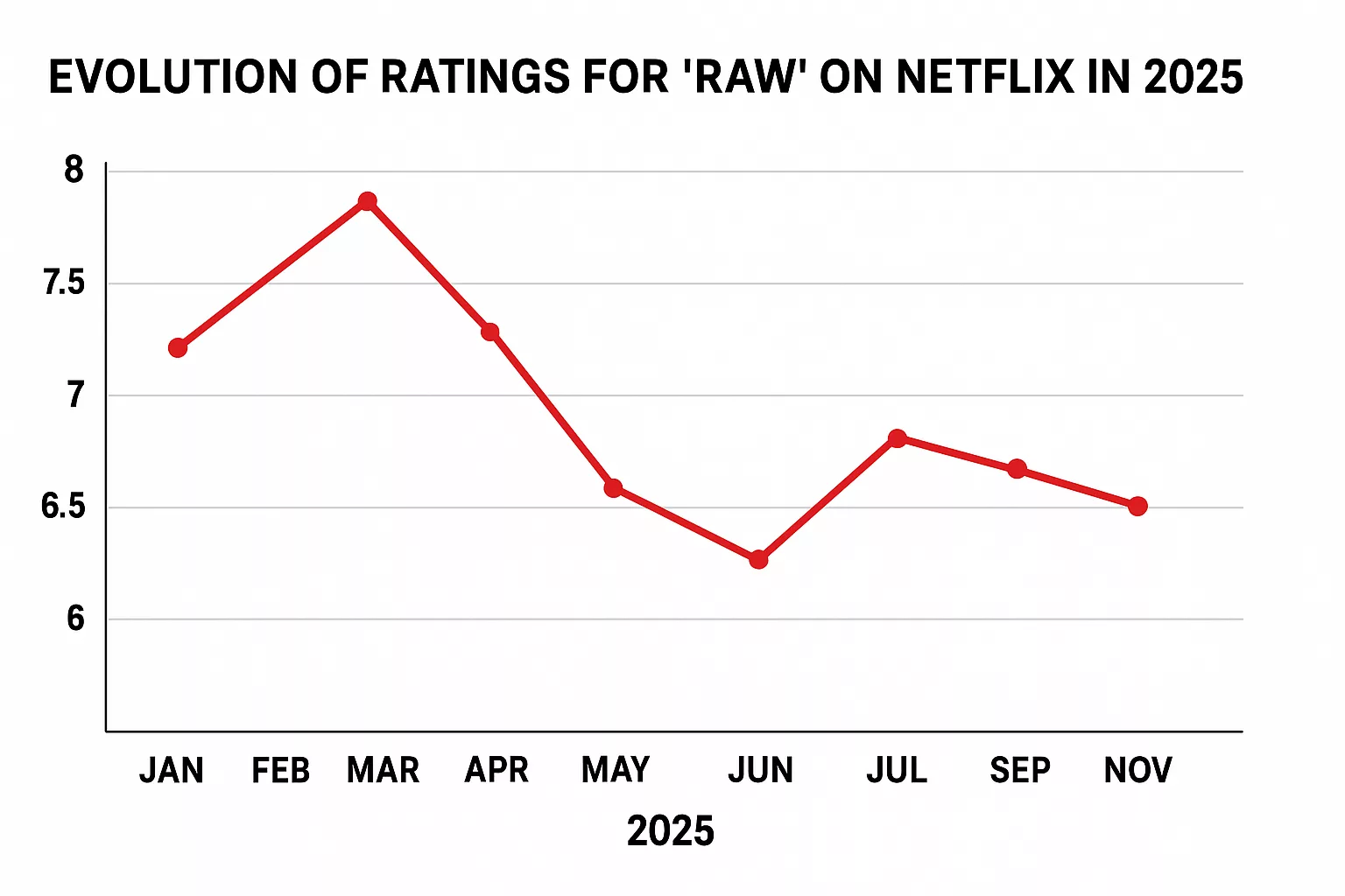 En cuanto a los desgloses específicos, RAW se clasificó en el puesto número 4 en Estados Unidos, el número 10 en el Reino Unido, el número 8 en Canadá y el número 9 en India en las clasificaciones regionales seleccionadas de Netflix.