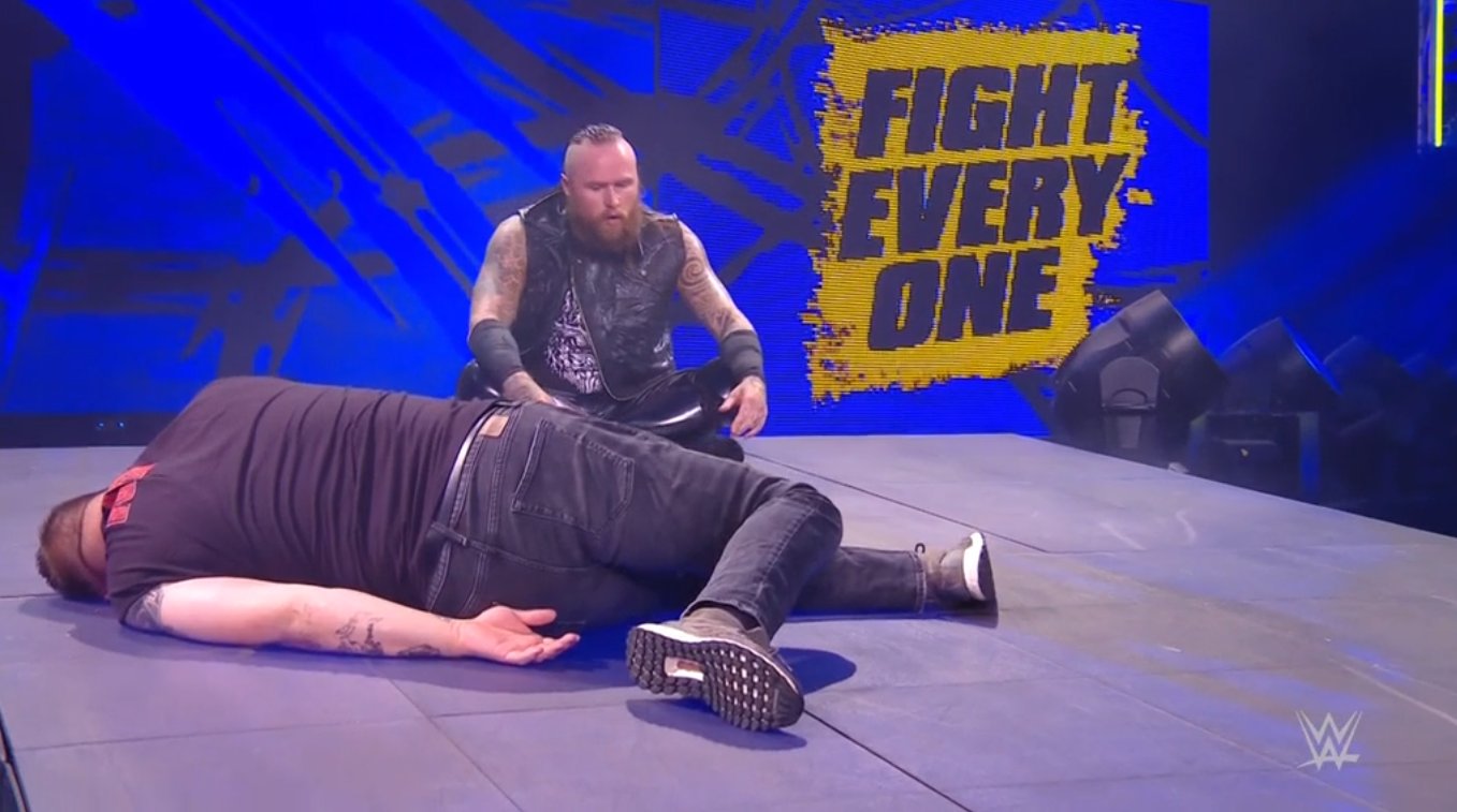 Owens no quiere esperar hasta SmackDown y dice que irá tras Wyatt, pero Aleister Black lo ataca por detrás y lo remata con el Black Mass.