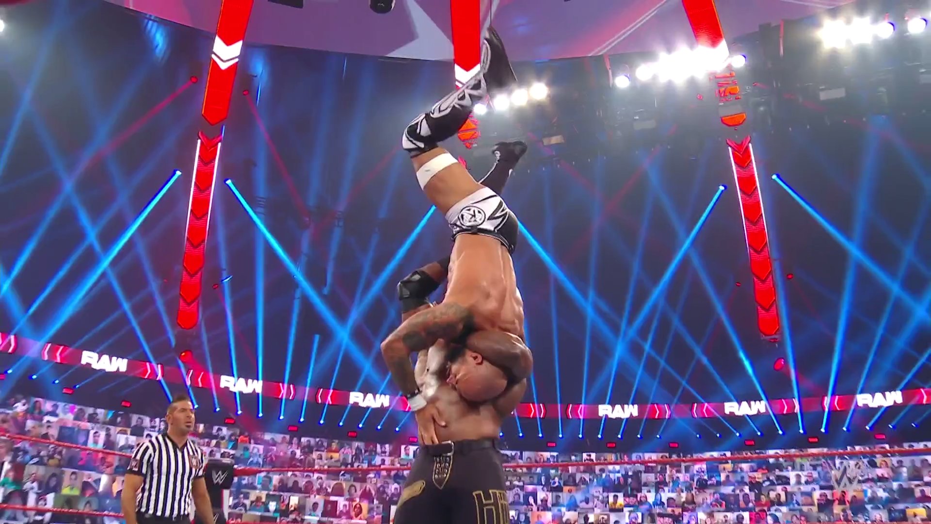 Al volver del comercial, Ricochet es embestido por una lanza de Lashley. Luego, le aplica un Suplex vertical y logra una cuenta de dos.