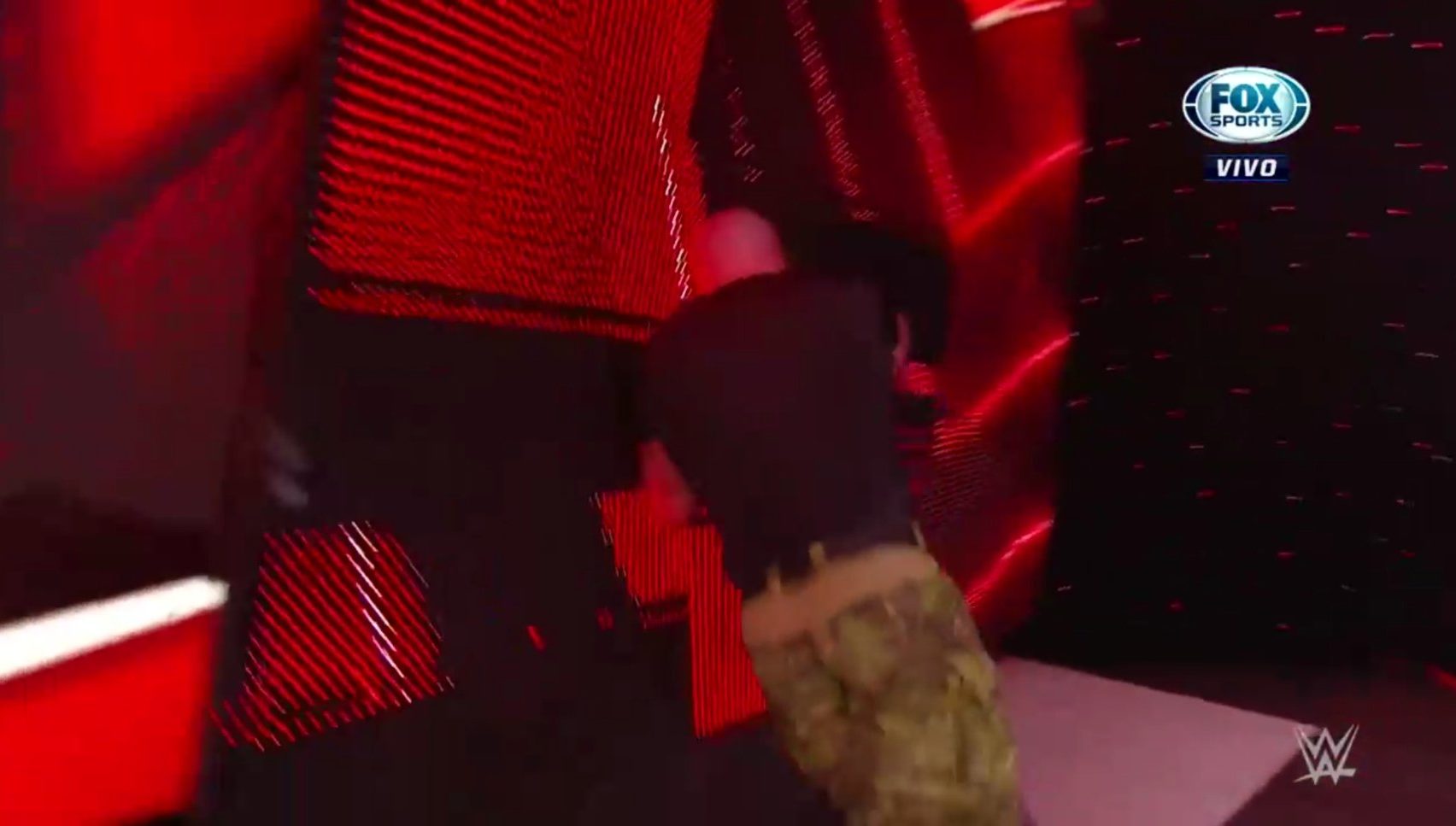 Llega personal de seguridad para calmar a Strowman, pero este busca castigar a Lee; sin embargo, este se levanta y ambos llegan al área de la rampa, donde Strowman es enviado contra la escenografía.