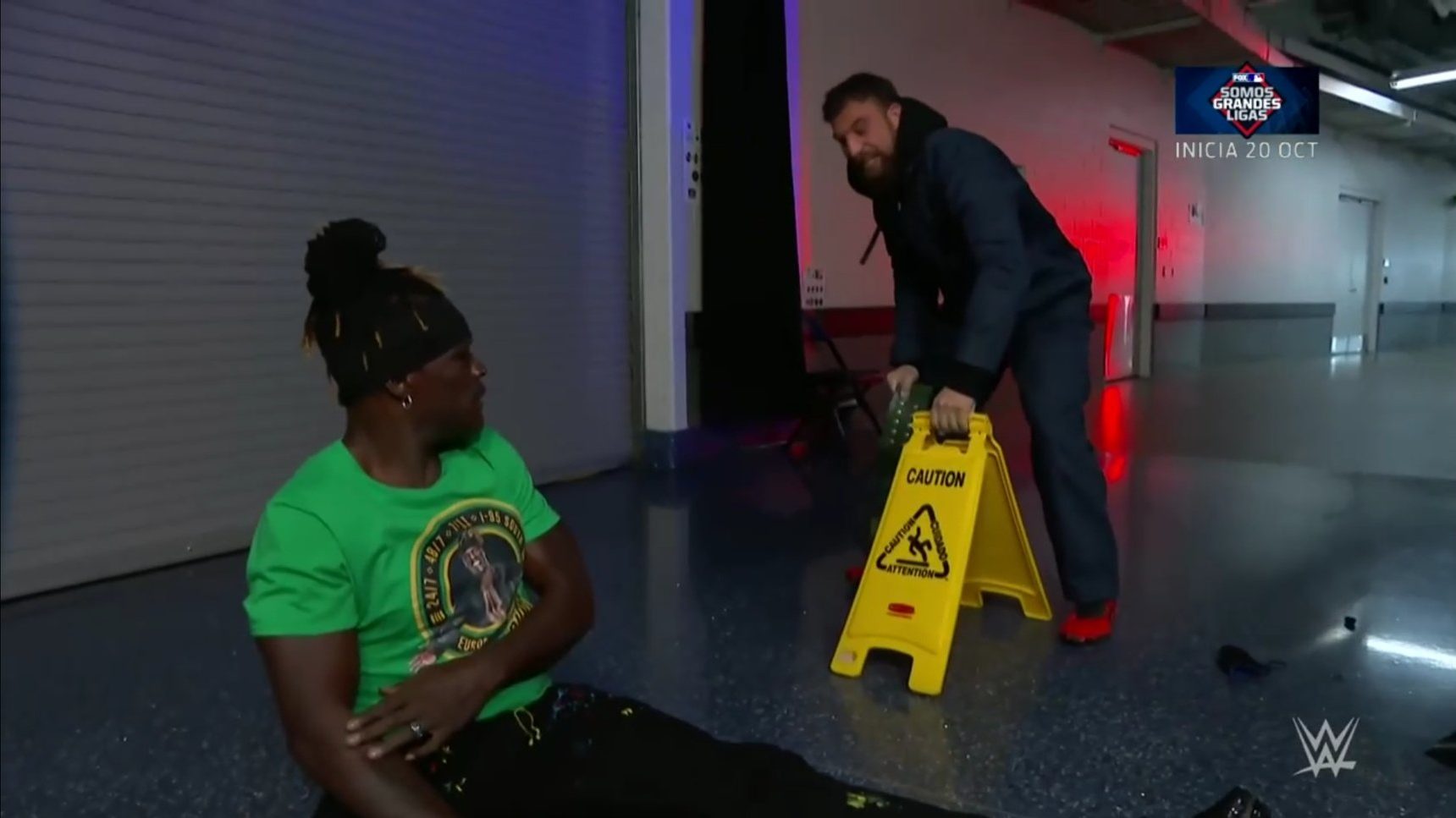 R-Truth está armando su propio tablero para el Draft, pero hay un conserje cerca. Aparece un réferi también y Truth se alerta. El conserje golpea con la escoba al réferi, y Truth lo confunde con Orton y busca escapar, pero se resbala. El conserje cubre a Truth y el réferi cuenta hasta tres. Nuevo campeón 24/7 y el conserje se revela no es otro sino Drew Gulak