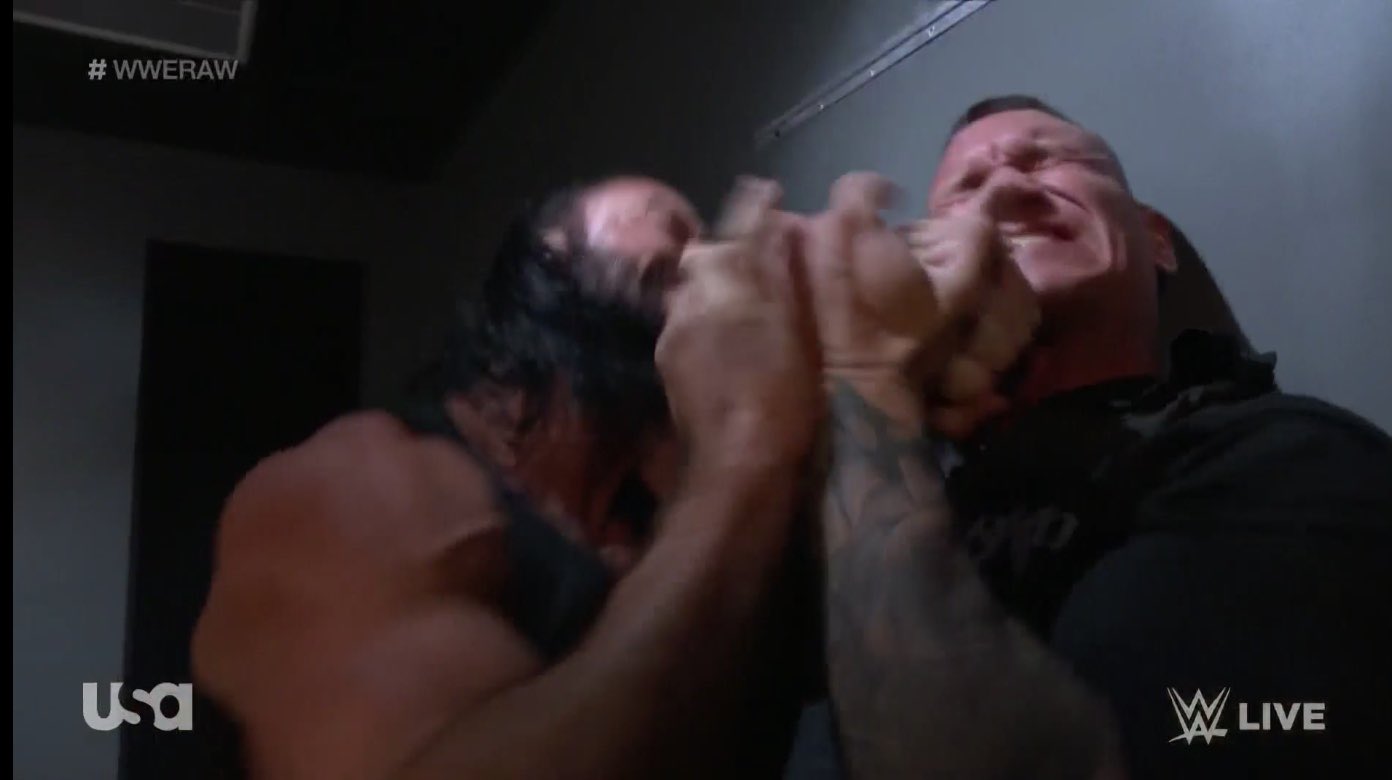 McIntyre no tiene que esperar mucho, ya que aparece en la habitación donde se encuentra Orton, y lo ataca, hasta que llega Adam Pearce y compañía a separarlos.