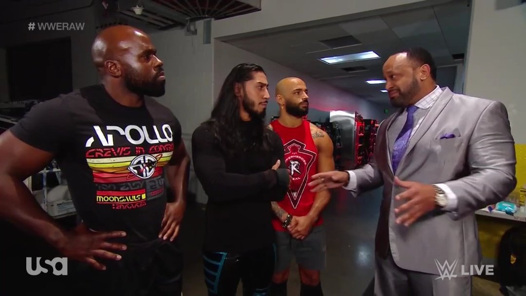 Apollo Crews, Ricochet y Mustafa Ali aparecen y este último le dice a MVP que solo pone excusas. Apollo está con Mustafa Ali. Mientras tanto, Ricochet dice que no va a esperar hasta el final de la noche para darle su respuesta, pero dice que «pasa» de su oferta y que no saldrá corriendo esta noche.