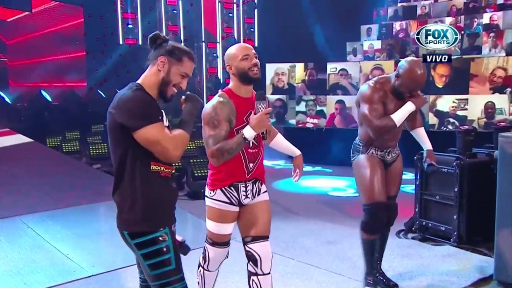 MVP y compañía están en el centro del ring y nos compartirá un anuncio oficial. Nos aclara que Apollo, Ricochet y Mustafa Ali no ganaron la semana pasada.