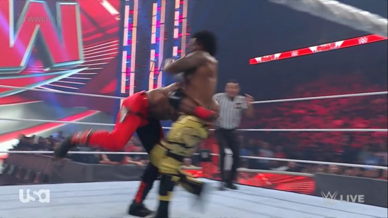Rápidamente, Lashley metió al ring a Alexander y tras una Spear, lo hizo rendir con el Hurt Lock. Poco más de dos minutos y medio duró la lucha. Tras esto, Omos se subió al ring a buscar a Lashley, pero MVP puso su bastón en medio de ellos y solamente señaló su reloj mientras sonreía.