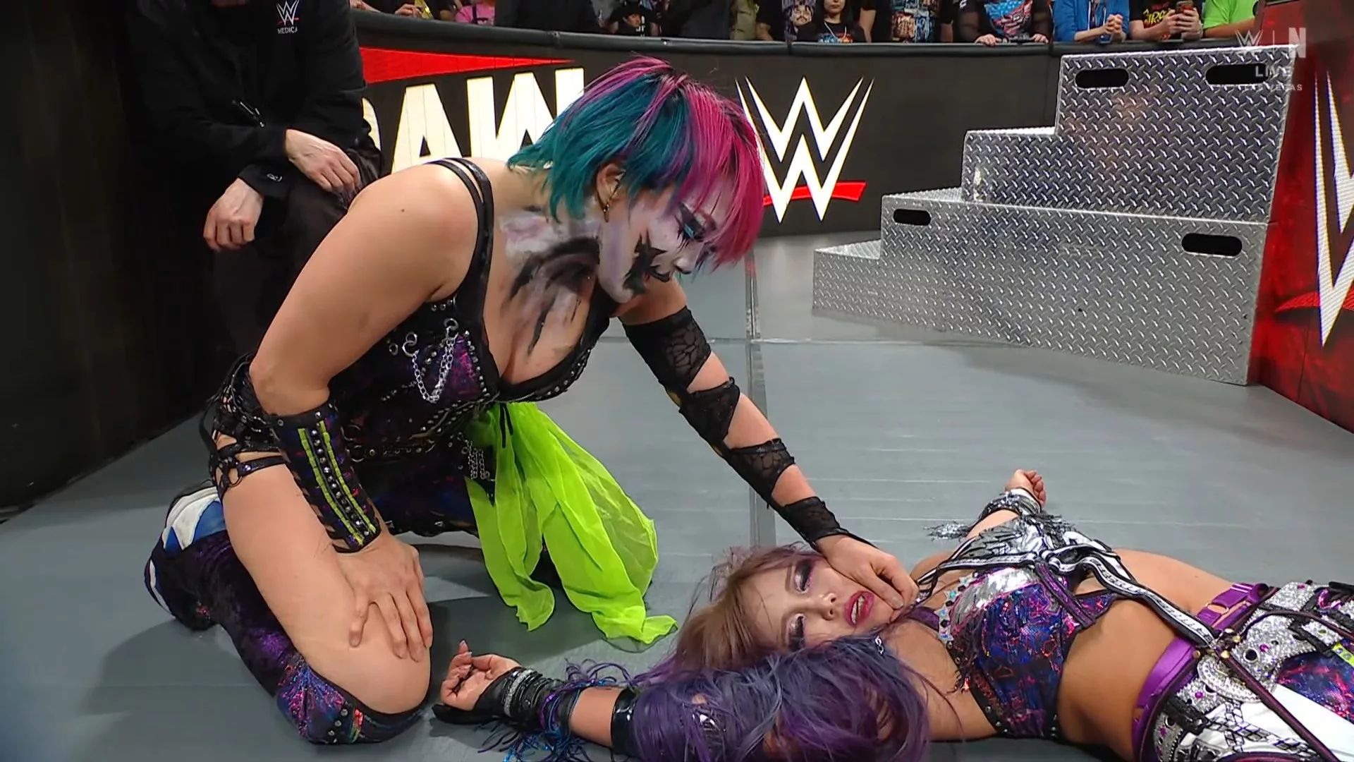 Ripley arrojó a Sky sobre Sane, pero la cuenta llegó solo a dos… Asuka entró y le dio bofetadas y derechazos a Ripley, luego, le dio patadas y codazos giratorios.