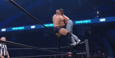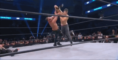 Después de un par de minutos de dolor, Omega puede relevar con Hangman, quien entra repartiendo golpes y patadas; súplexs y azotones.