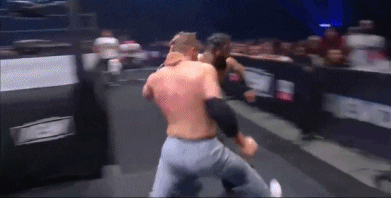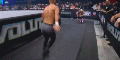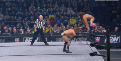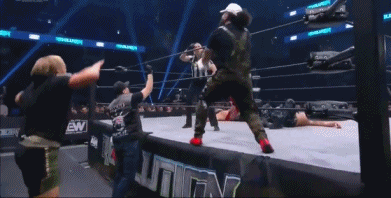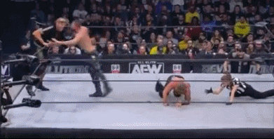 «¡A-E-W! ¡A-E-W!!», sigue el coro… Hangman queda en malas condiciones al recibir la serie de Northern lights Suplexs de Matt en plena rampa… Y luego, lo impensable: Le aplican el Meltzer Driver.