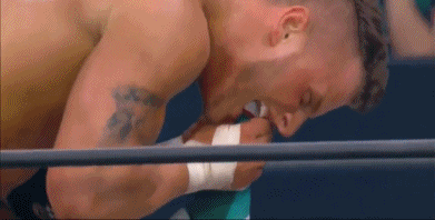 Los campeones se ven cansados. Matt tiene a Omega en una esquina y va a la contraria para escupirle a Hangman, calentando más la olla de presión. Luego le aplica un brutal martinete a Omega.