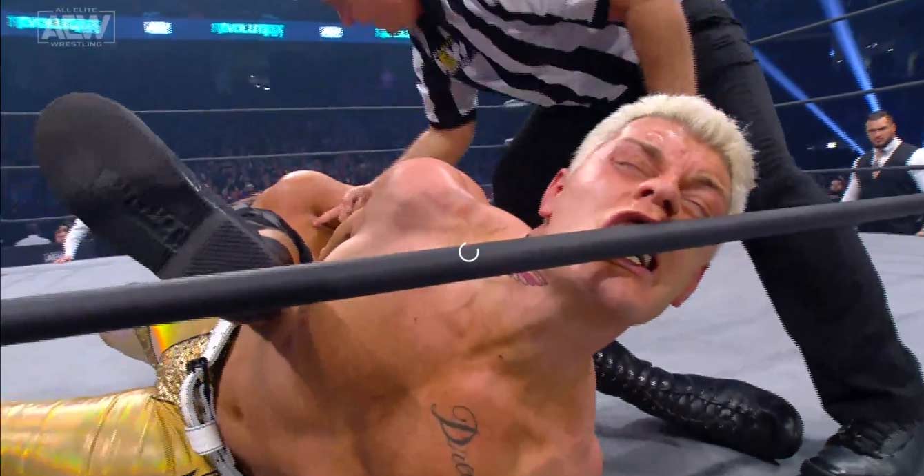Cody se da tiempo para atacar a Wardlow, cuando éste amenaza a Brandi Rhodes. No era necesario, pues Brandi ya había escapado, y además abajo está Arn Anderson para respaldarla.