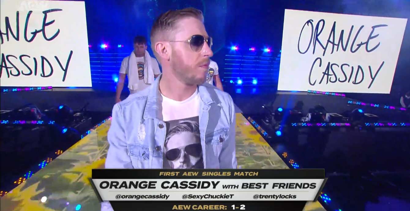 Orange Cassidy se presenta por fin ante los fans de AEW en la última lucha que se programó para este evento. Aunque los fans de AEW bien que lo conocen, por eso desde los primeros minutos ya están coreando «This is Awesome!» y «Fight Forever!»