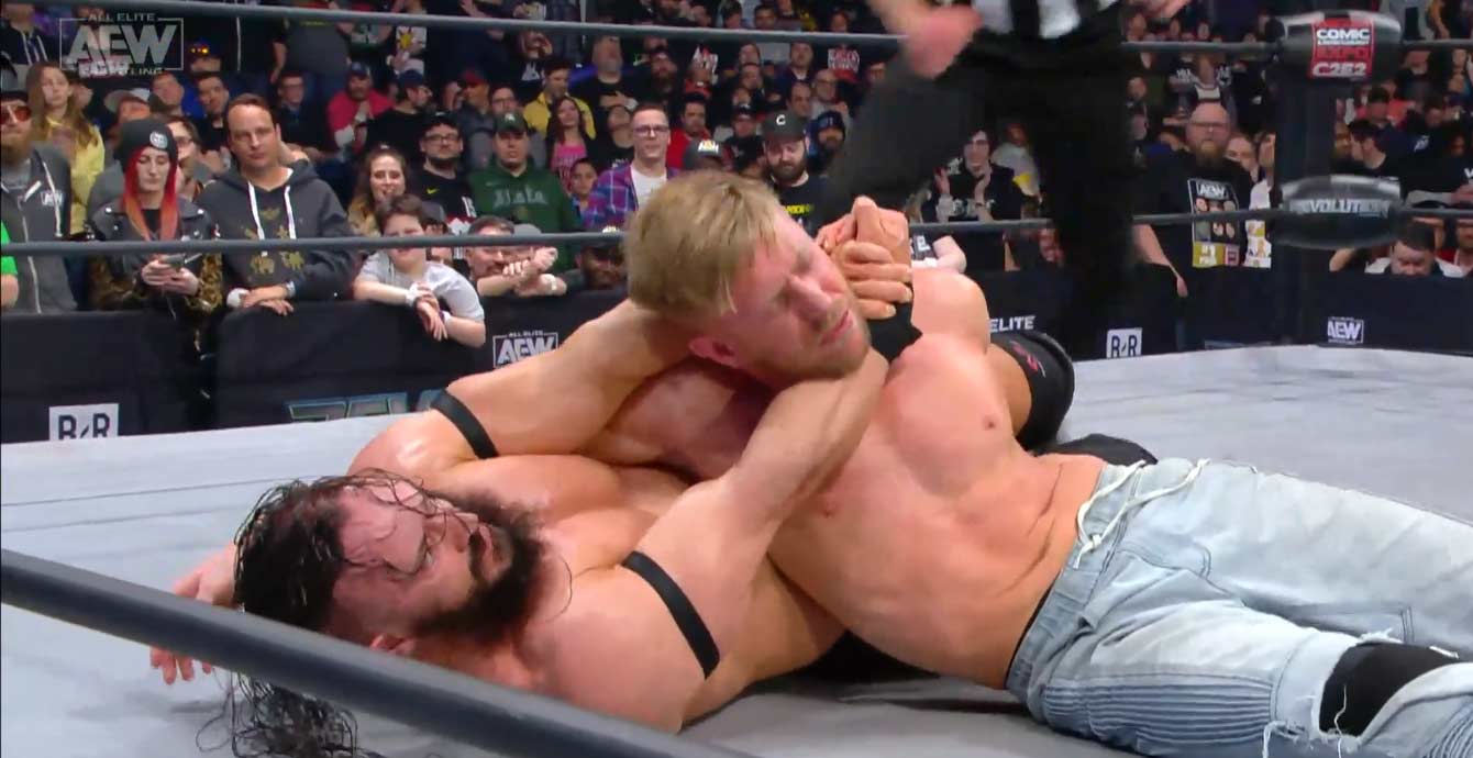 Jake Hager inicia de manera dominante. Es la primera vez que lucha en AEW, y vemos a alguien distinto al Jack Swagger de WWE, pues ahora usa derribes y puñetazos a la usanza de las MMA.