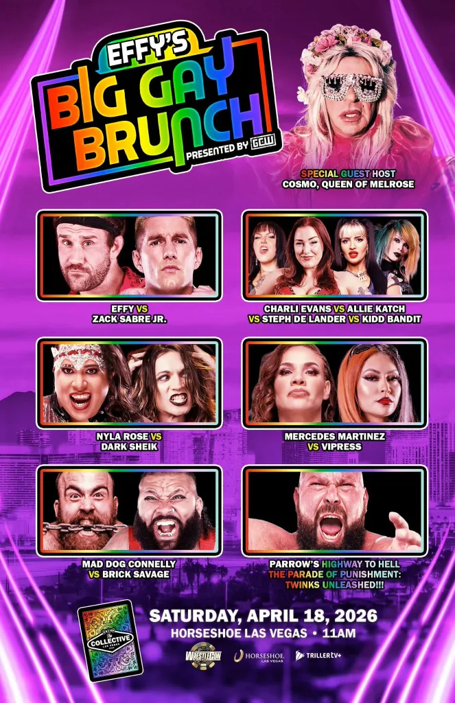 La empresa de lucha libre independiente, Game Changer Wrestling, presento en el fin de semana de WrestleMania su evento GCW EFFY’s Big Gay Brunch 11, el cual tuvo lugar el 18 de abril 2026, desde Horseshoe Las Vegas en Las Vegas, Nevada, Estados Unidos. El evento fue transmitido en vivo por TrillerTV+.