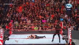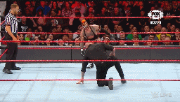 Mysterio no puede completar la faena. Se arroja en plancha, pero Corbin se quita.