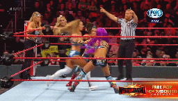 Hay tensión entre las dos parejas de consentidas. Después de un corte comercial, Bayley está siendo dominada por las IIcónicas.